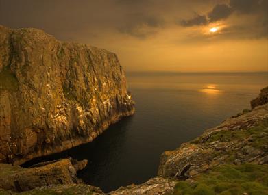 This dramatic offshore island has cliffs up to 120m high, the perfect place for breeding seabirds in spring and early summer. Walk along the coastal heathland and enjoy the spectacular views.