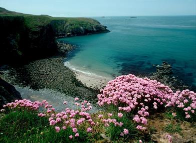 The island is awash with colour from May to September, with bluebells, then pink thrift and purple heather. You might see choughs and peregrines nesting on the cliffs. And if you visit in the autumn, you can watch a colony of breeding grey seals. There is a small shop on the island and refreshments are available.