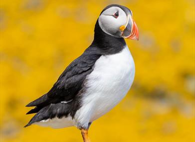 The sea cliffs provide nest sites for as many as 9,000 seabirds, including puffins, guillemots, razorbills, kittiwake and fulmars. Other birds to use this habitat include peregrines and ravens.