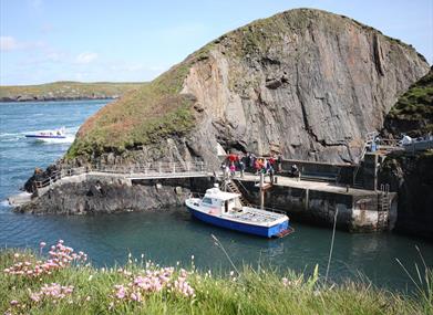 The Thousand Islands Adventure is one of the most popular trips. Departing from St Justinians Lifeboat Station in St David's you will cross over the swirling currents of Ramsey Sound. Your voyage takes you beneath the magestic cliffs adorned with nesting seabirds and colonies of seals. There's also a chance to see the resident porpoise.