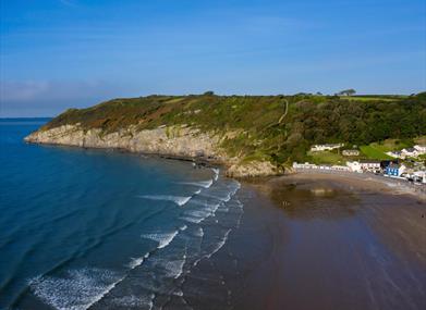 This walk offers superb views across Carmarthen Bay and beyond. The path skirts the top of wooded and scrub-covered