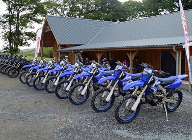 The Yamaha Off-road Experience base is 5 miles outside of Llanidloes in the heart of the Mid Wales' Cambrian Mountains. This 600 acre farm backs onto the magnificent ten thousand acre Hafren Forest and Sweet Lamb motorsport complex which make up the vast riding areas.