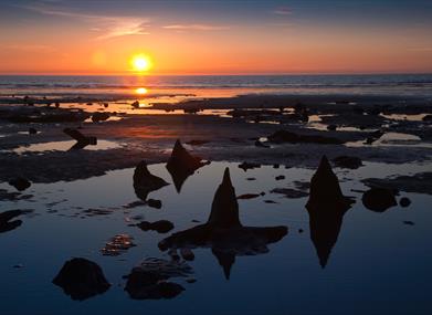 6. When you reach the information board at the edge of the dunes, you can either walk through the dunes DE by turning L to follow a path and board walk by the interpretation centre or alternatively you can walk around the dunes along the beach. If you decide to walk through the dunes, you will need to turn L when you emerge back on to the beach.