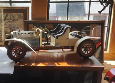 Marques include Bugatti, Bentley, Mercedes and Rolls-Royce cars together with Grand Prix and World Land Speed Record breakers, buses, trams and vans of every description. Two superstar models over three feet long reign over their lesser subjects. One is a Singer Le Mans which is a replica of a car that Miss Rogers owned and drove for forty years until 1998. The second, Madame Cloette, was probably the forerunner of Brum – a feisty car hero of children’s TV in the Nineties.