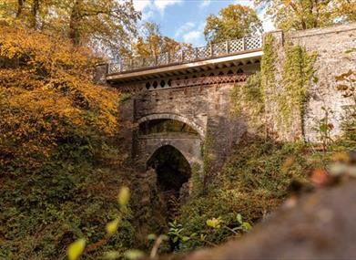 The Devil's Bridge Fall Nature Trail take approximately 45 mins and is a circular walk that takes you deep into the wooded gorge with spectacular views of the 300ft Mynach Waterfalls. The shorter '3 Bridges & Punchbowl trail will take approximately 10 minutes. These walks are challenging and consists of many steep steps.
