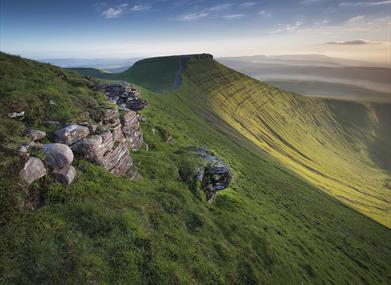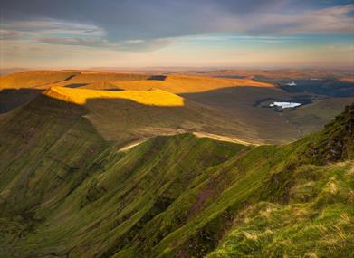 The landscape was carved into the distinctive shapes seen today during the Ice Ages of the last 2 million years, the last glaciers melting away only 11,500 to 12,000 years ago. Snow and ice collected on north facing slopes, developing into glaciers and gouging away the rock, creating steep slopes and the valleys below. At Craig Cerrig-gleisiad and Fan Frynych National Nature Reserve stand in the atmospheric natural amphitheatre created by a glacier. Take binoculars to spot some of the many birds that use the reserve and arctic-alpine plants that live on the craggy northern slopes.
