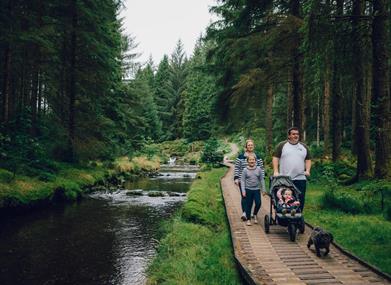 The Blaen Hafren Falls Trail is a scenic route through the heart of the forest alongside the River Severn to Blaen Hafren Falls.