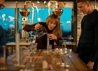 We are a working distillery with some public areas, including shop, lounge and gin lab. We currently take bookings for gin making and gin tasting experiences, which include a tour of the distillery with your host.