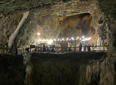 Llanfair Slate Caverns is an underground visitor attraction where you can take a self-guided walk through nine man-made caverns, shaped by Welsh slate mining over 100 years ago. It’s a chance to see the scars left by miners’ tools in the rock, and to get a real feel for the scale and atmosphere underground, with immersive sounds as you explore.